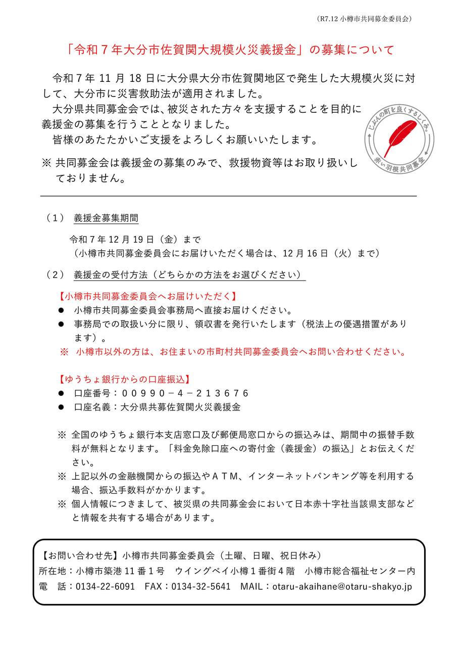 「令和7年大分市佐賀関大規模火災義援金」の募集について