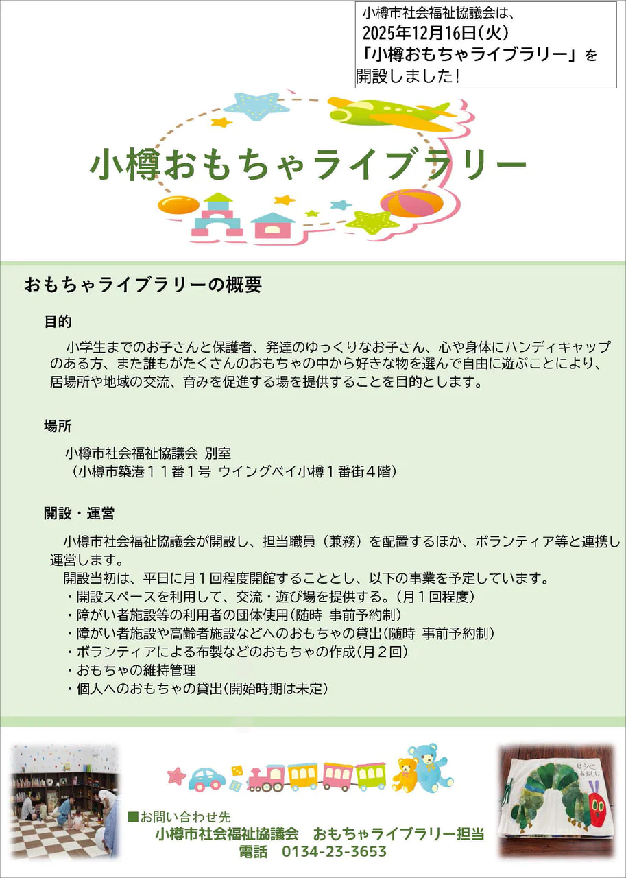 12月16日(火)に、小樽おもちゃライブラリーを開館いたしました。