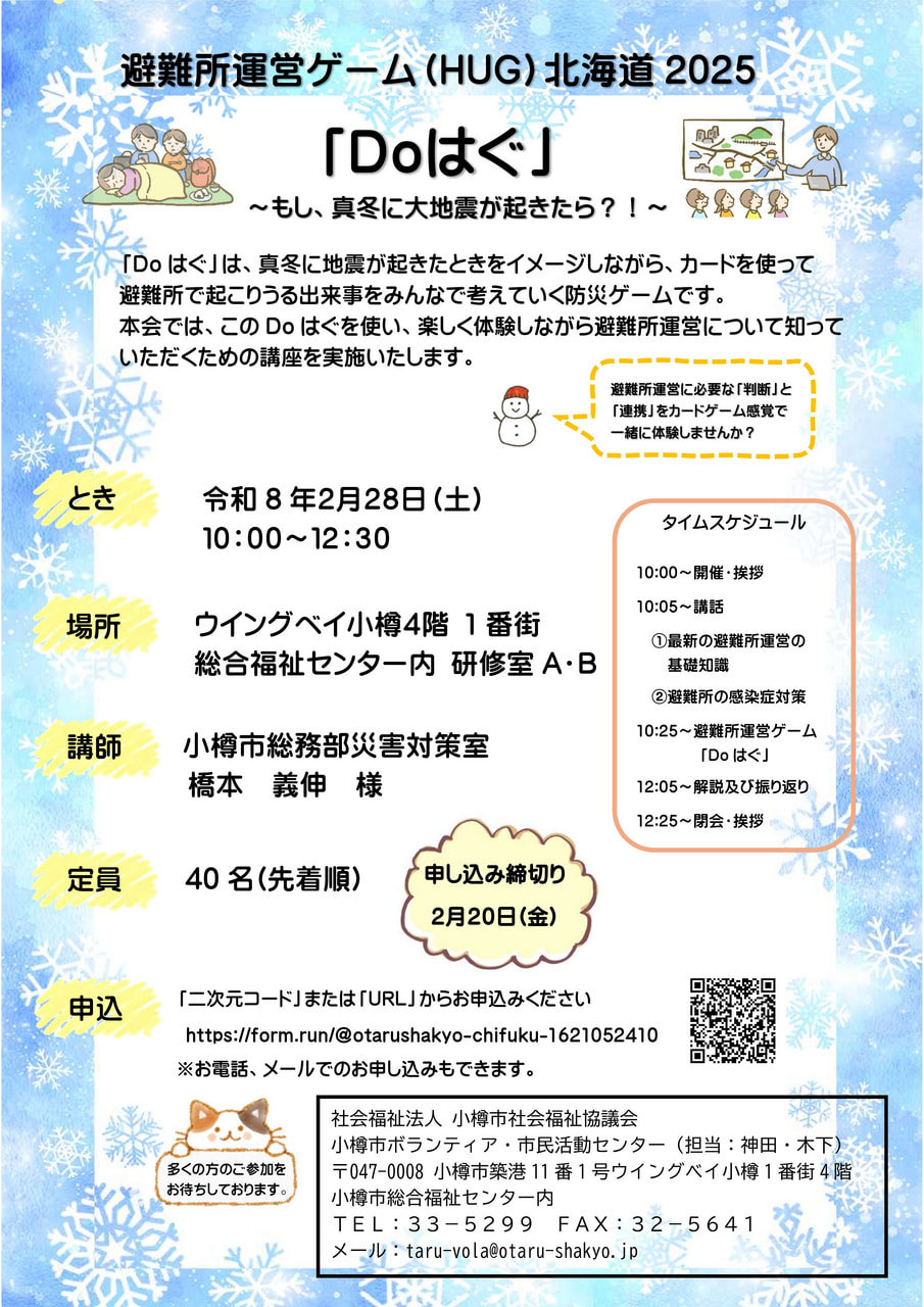 【避難所運営ゲーム(HUG)北海道2025 「Doはぐ」 ~もし、真冬に大地震が起きたら?!~を開催いたします】